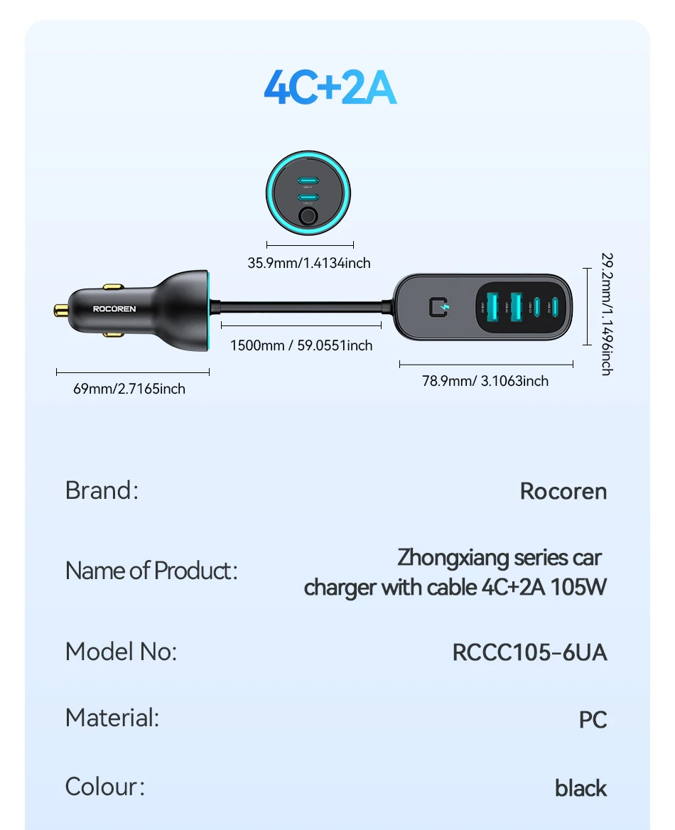 Model Number: Rocoren 6 in 1 Car Charger Fast charging