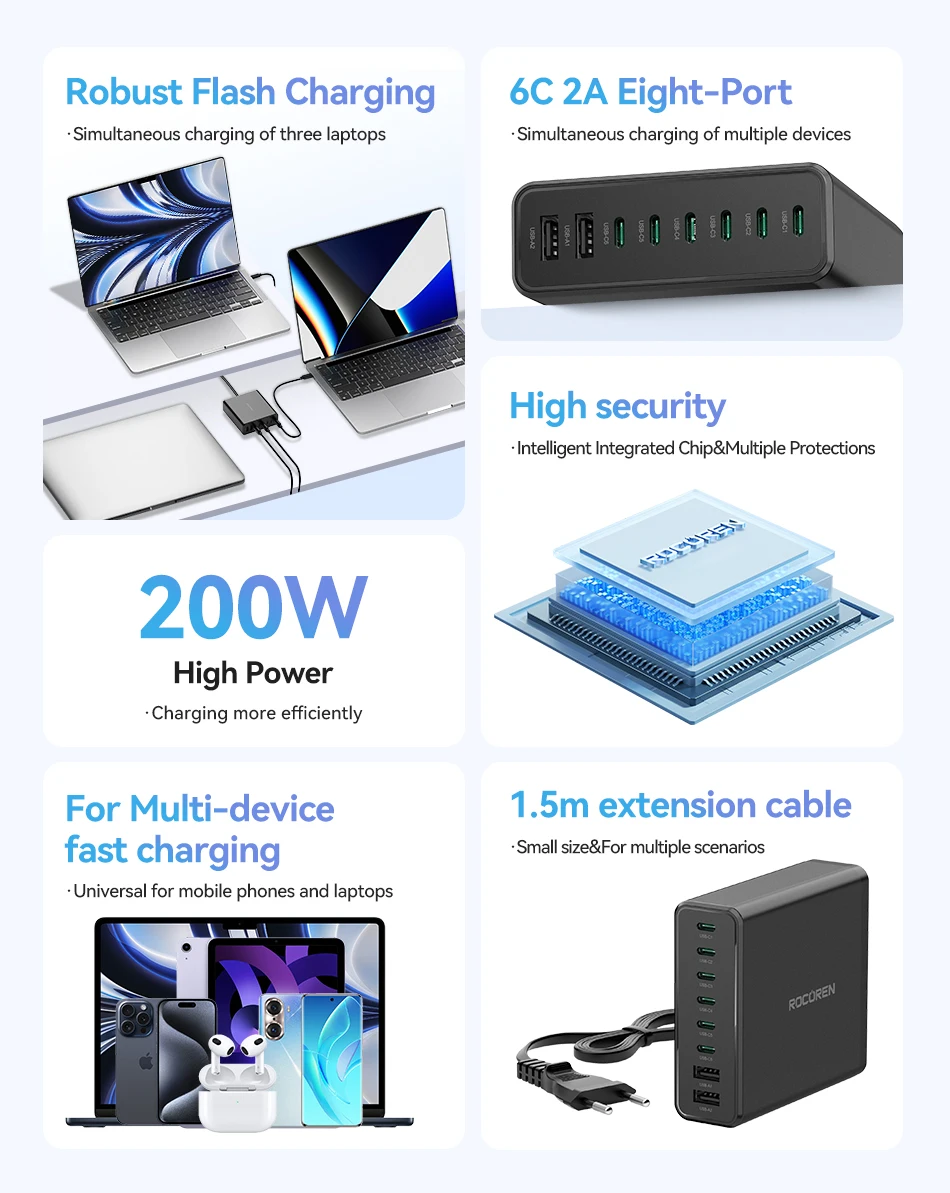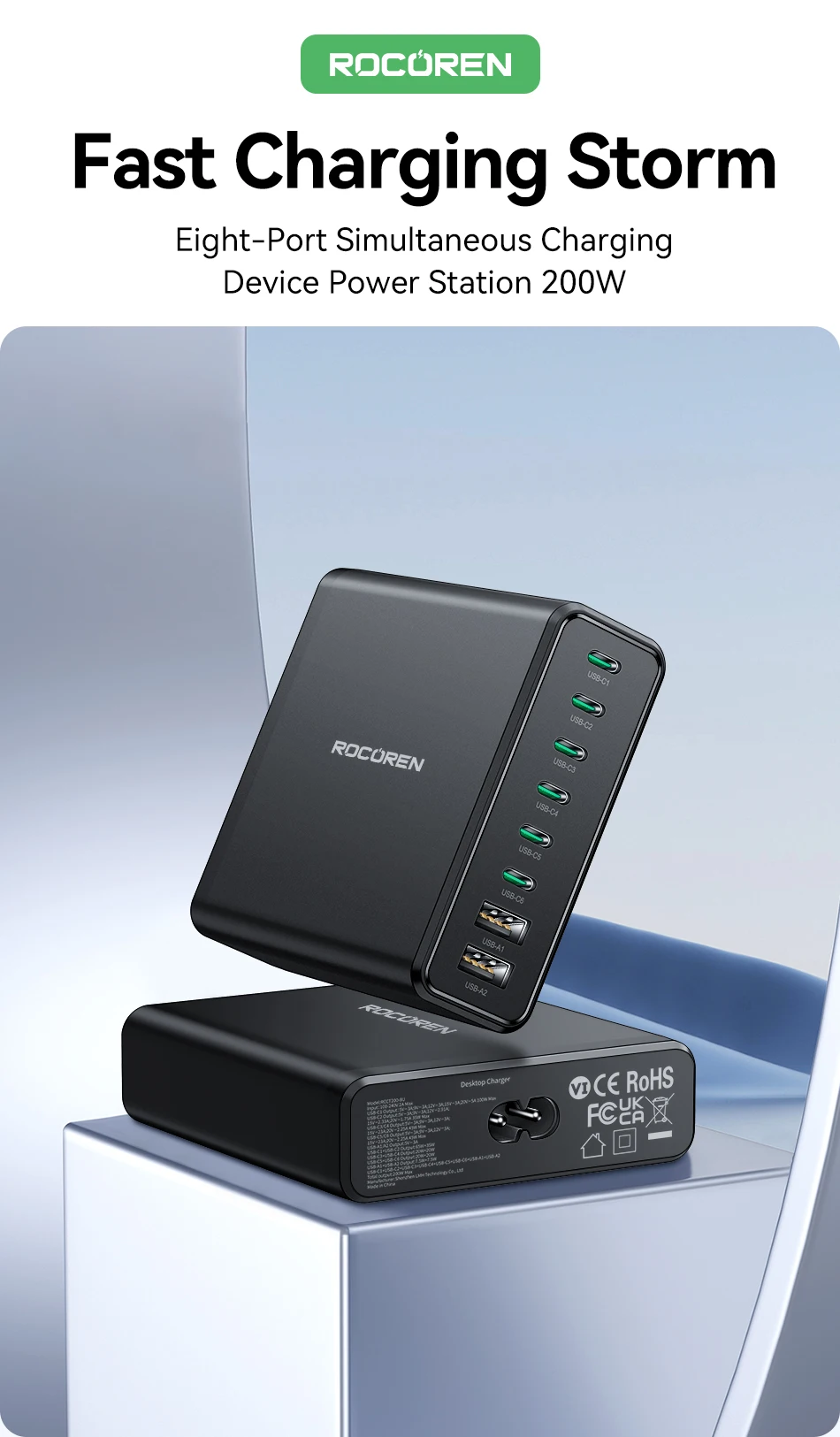 Product Name: Rocoren 200W 8 in 1 Multi Port USB Type C PD Charger