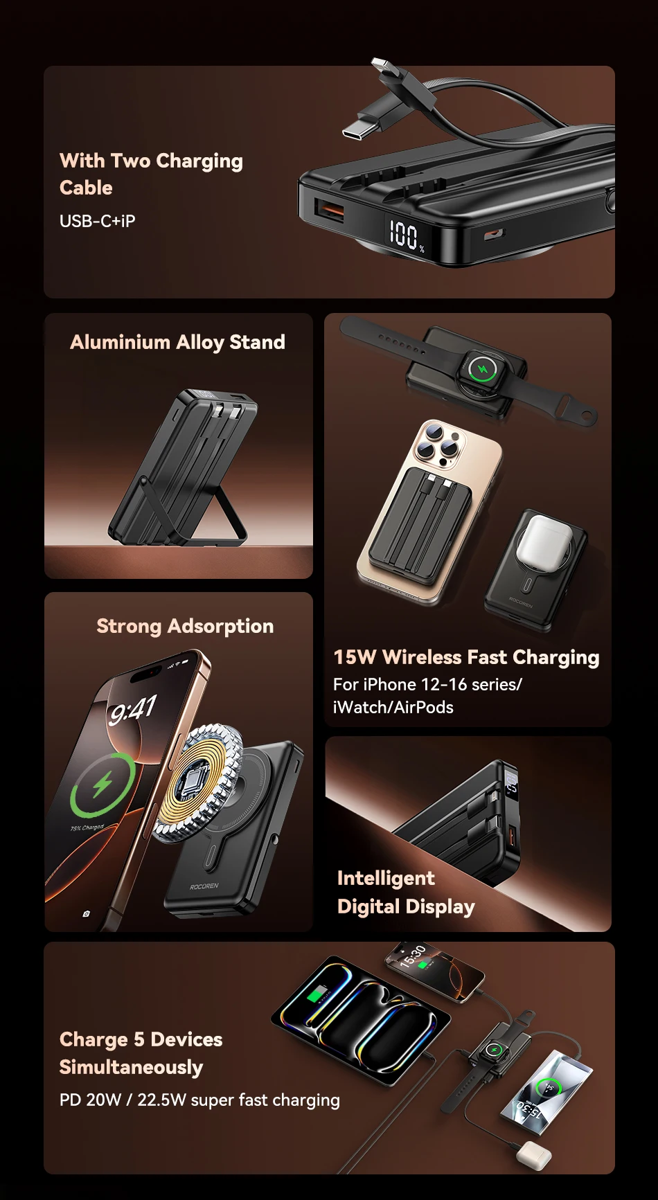 Rocoren 3-in-1 Magnetic Power Bank